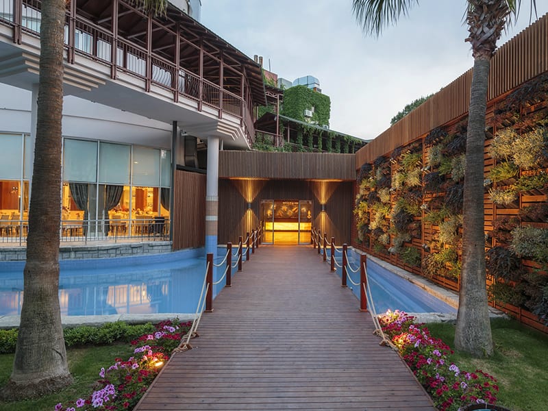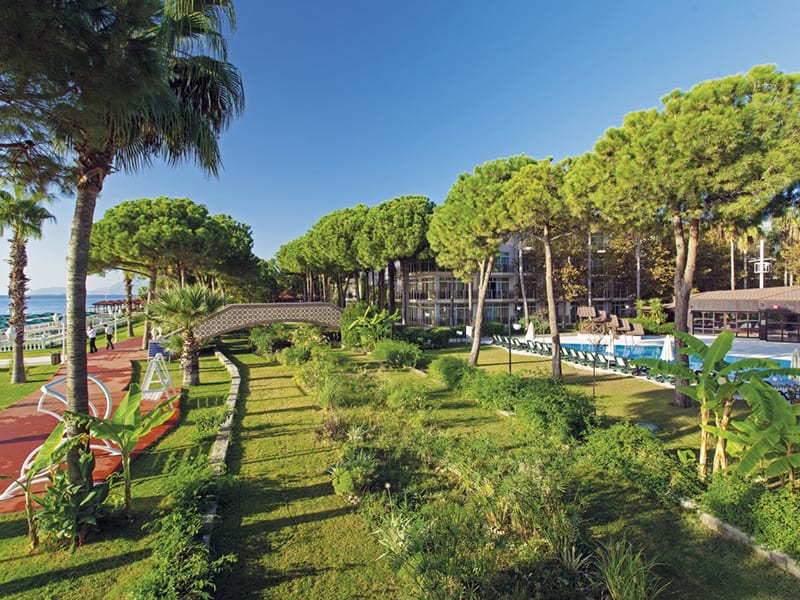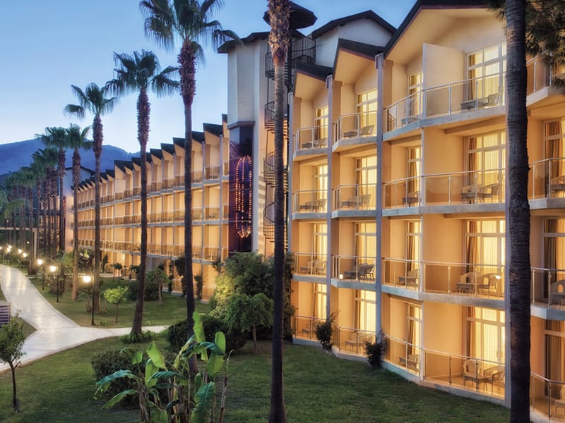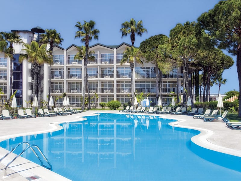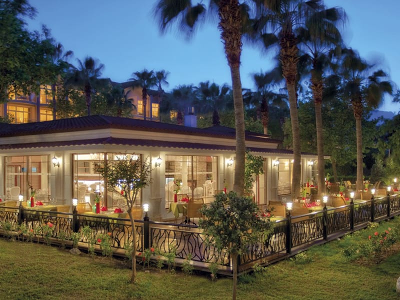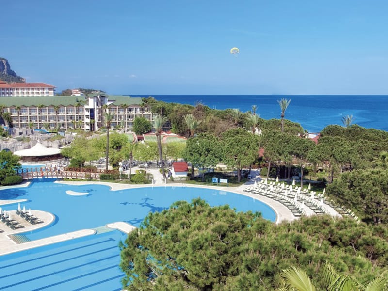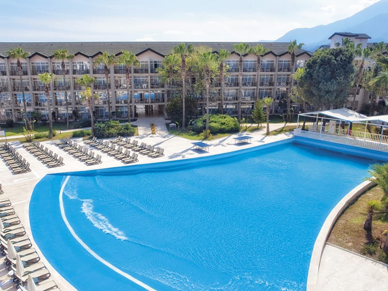 Шикарный отель расположен в районе Кемере, среди гор в живописной местности, на первой береговой линии, в 65 км от аэропорта Антальи, в 6 км от центра города Кемер.