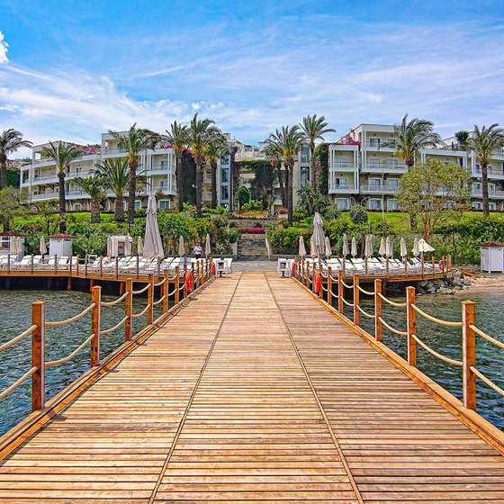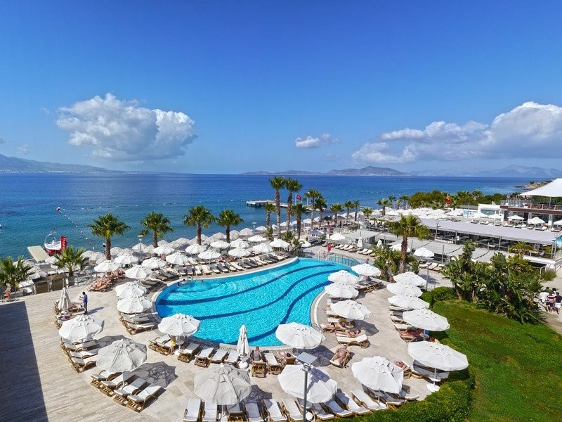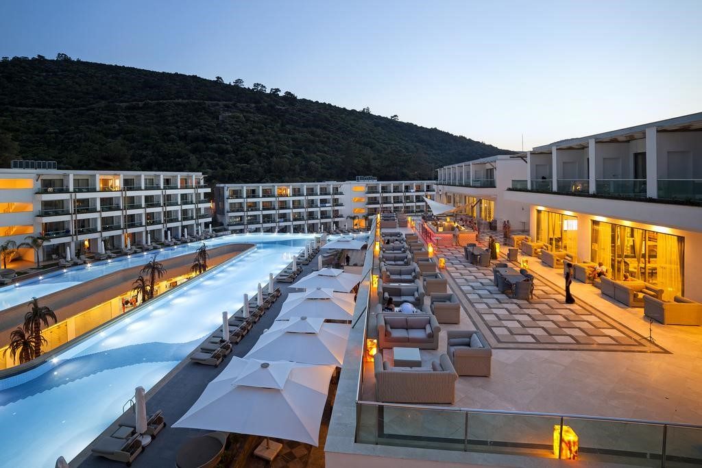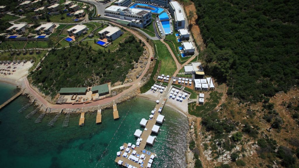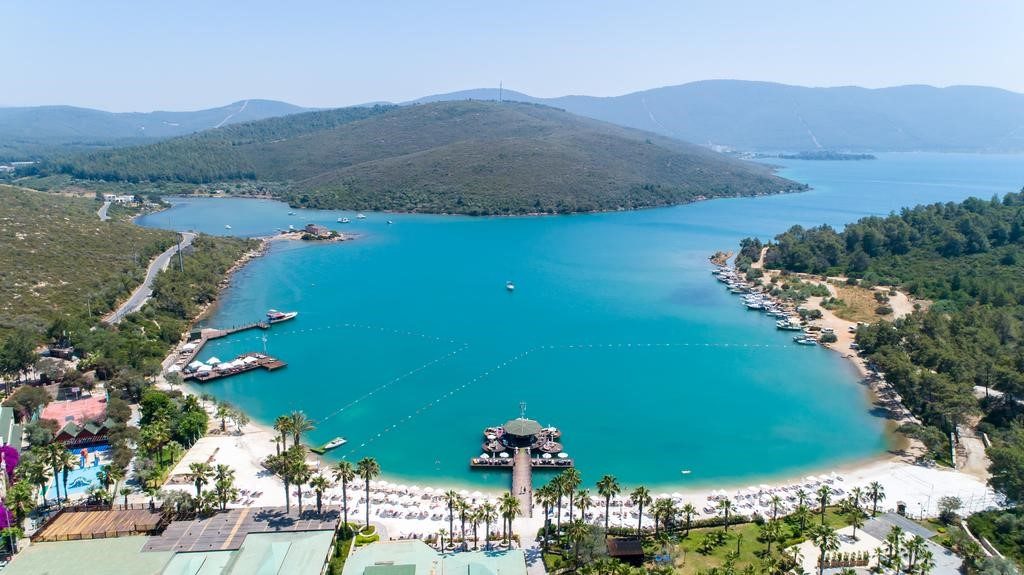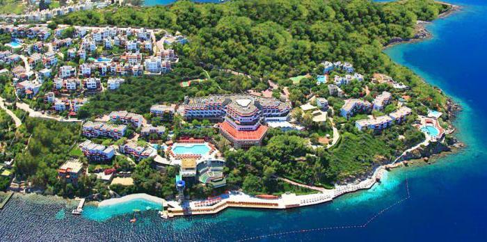 Отель находится на самом берегу моря, 10 км от курортного поселка Тургутрейс, в 25 км от центра г. Бодрум и в 60 км от аэропорта г. Бодрум. Общая площадь отеля – 50 000 кв.м. Дата открытия – 2009 год