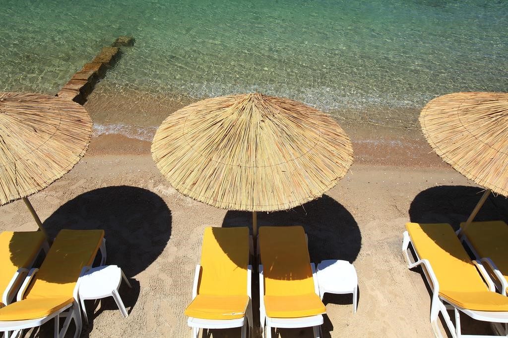 Пляж песчано-галечный, шатры на пляже бесплатно