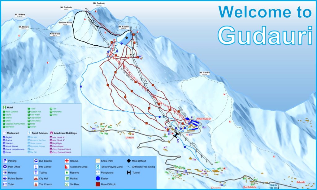 Горнолыжный курорт Гудаури – самый молодой и перспективный горнолыжный курорт Кавказа. Находится он в Казбегском районе Грузии, в 120 км от Тбилиси, на высоте 2196 м. Уникальный природный рельеф Гудаури, глубокий и стабильный снежный покров, отсутствие камней, лавинная безопасность и высокогорное размещение – факторы, которые привлекли сюда иностранных инвесторов.