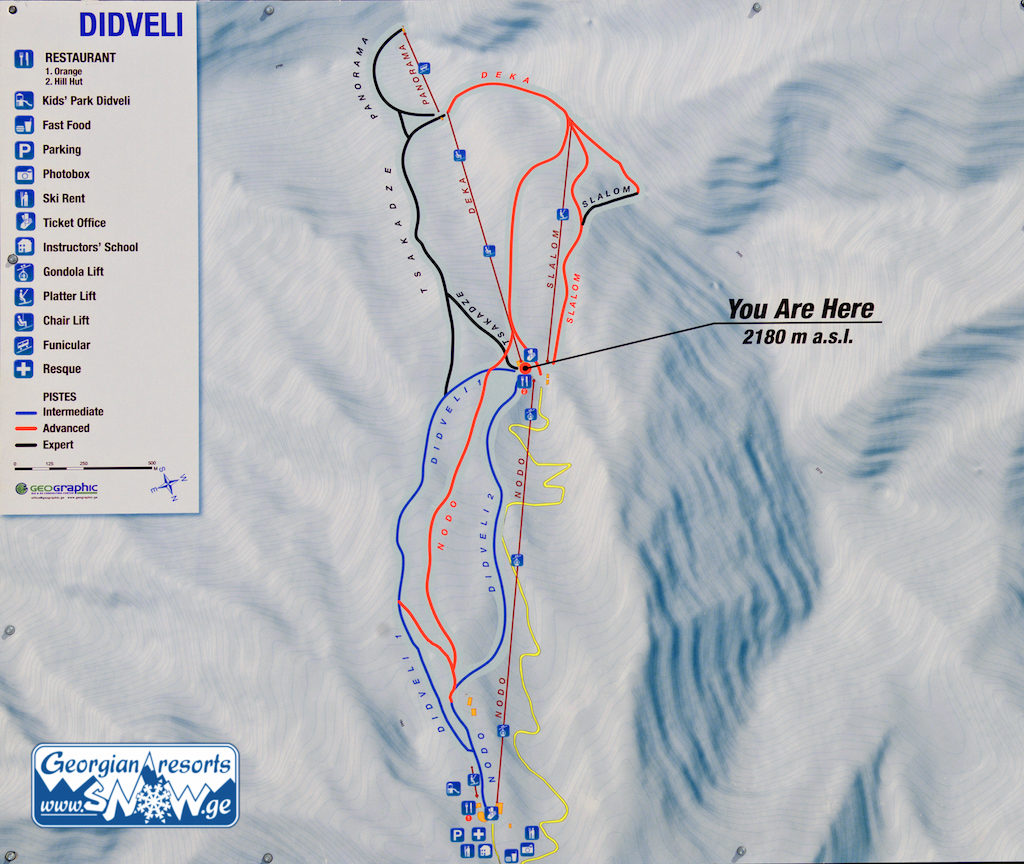 Трассы расположены на склонах горы Кудеби, верхняя станция дороги – на высоте 3007 метров. Все трассы находятся выше уровня леса. Здесь немного подъемников, всего 4 нитки, но много вариантов спуска.