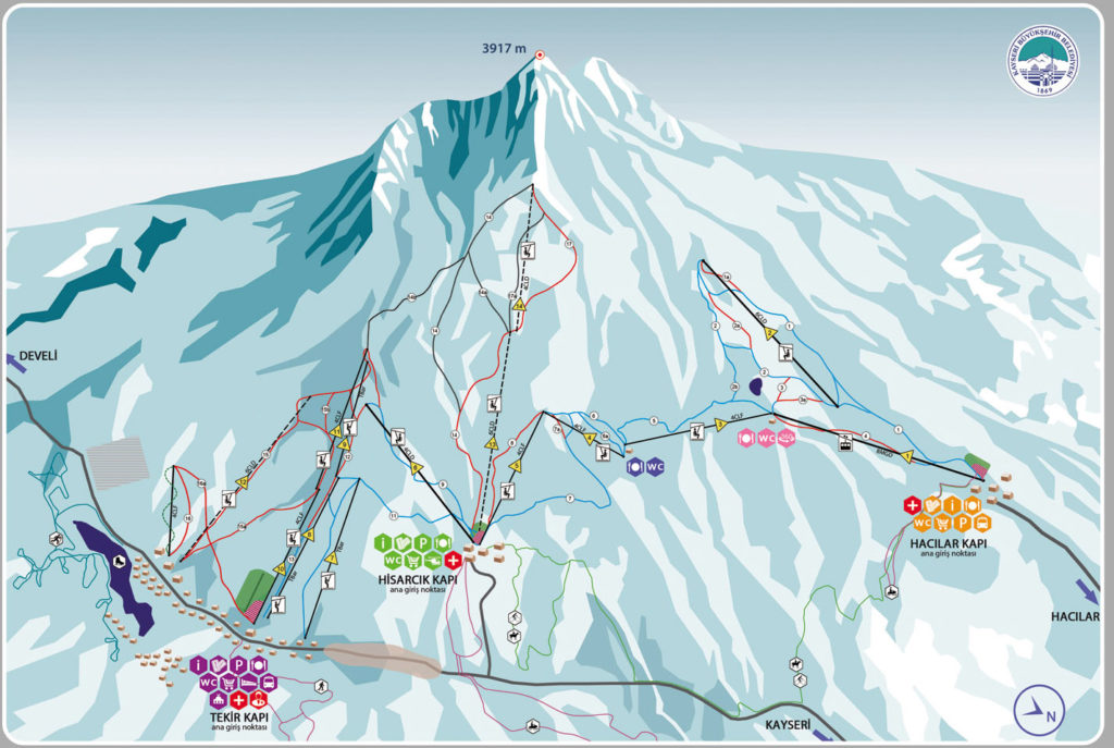 ЭРДЖИЕС – современный и популярный горнолыжный курорт Турции, на котором созданы все условия для комфортного отдыха – разнообразные трассы для катания на лыжах и сноубордах, подъемники, горнолыжные школы, включая школы для деток, и индивидуальные занятия с инструктором. Курорт находится в восточной Каппадокии на горе Эрджиес (3917 метров над уровнем моря).