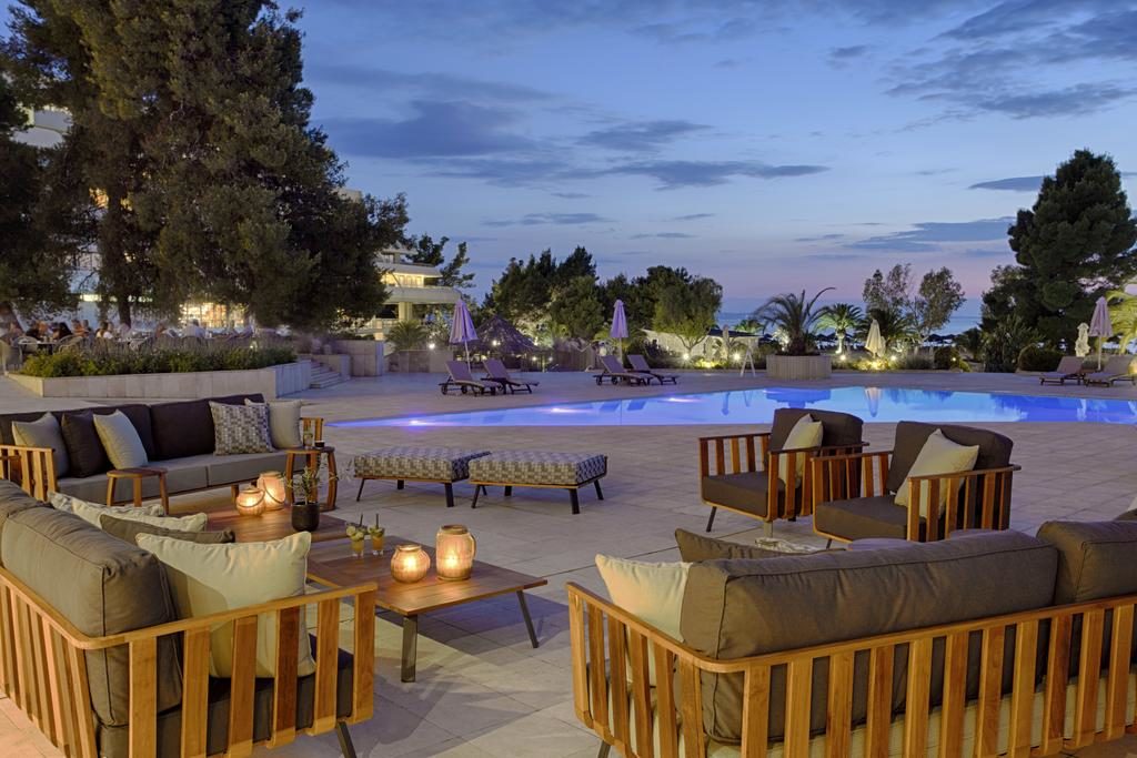 Роскошный отель из известного гостиничного комплекса «Porto Carras Grand Resort». Располагает частной гаванью, самой большой в Северной Греции. Оригинальную архитектуру отеля дополняют просторные холлы, рестораны с отличной кухней, лагуны, зоны отдыха и великолепный пляж.