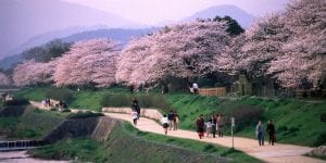 Район гейш Гион и парк Маруяма с тысячей цветущих деревьев сакуры – одно из самых популярных мест любования сакурой.