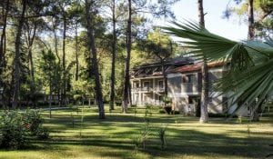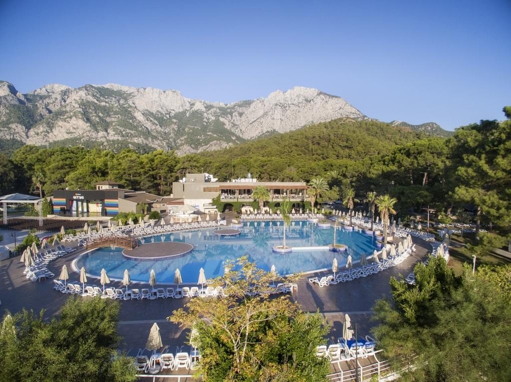Отель Kimeros Park Holiday Village 5* расположен в поселке Гейнюк, в 6 км от Кемера,окружении хвойного леса, с прекрасной зеленой ухоженной территорией на первой береговой линии Средиземного моря. Подходит для семейного отдыха.