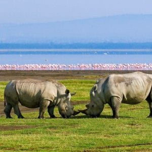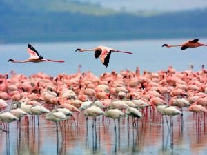 После неболшой сиесты – сафари-тур по парку Накуру. Накуру в Долине Великого Африканского Разлома. Озеро Накуру — это настоящий птичий заповедник, где обитает несметное количество розовых фламинго, огромными стаями они слетаются к берегам озера, что бы словить и полакомиться рыбой. Помимо ярких красочных взрослых особей, на озере можно встретить и гнезда с маленькими, еще тусклыми, птенцами. Только в процессе роста, фламинго приобретают ярко розовый окрас.