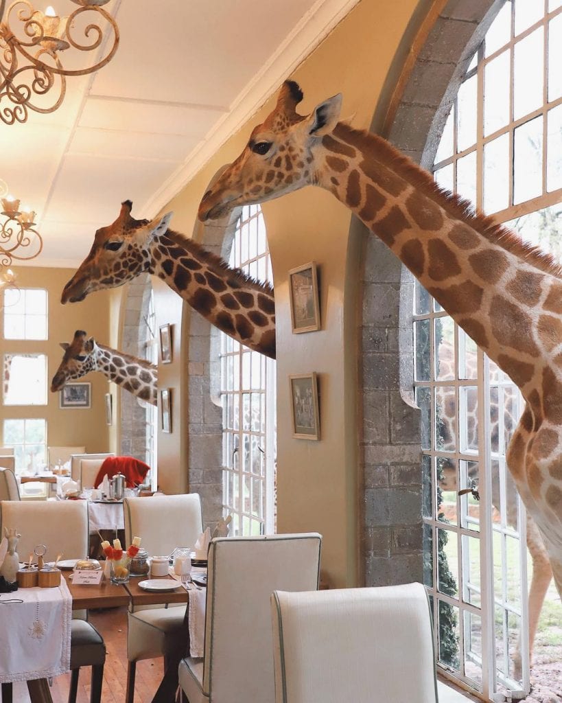 Альтернативно, мы можем предложить размещение в уникальной усадьбе Giraffe Manor (стоимость тура будет пересчитана по запросу). Здесь разводят редкий вид жирафов с пятью рожками – жирафов Ротшильда. На этой ферме их выращивают и отпускают на волю. На территории усадьбы есть мини-отель, отрытый в 1984 году, где у гостей есть возможность кормить жирафов своими руками прямо из окон своих спален и окон ресторана, трогать и обнимать их. Также, все доходы от проживания отель переводит в Африканский фонд защиты исчезающих диких животных, что тоже является огромным плюсом.