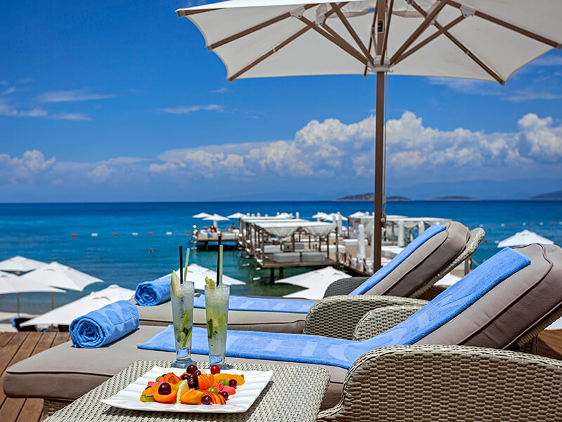 Отель расположен в заливе Усулу полуострова Бодрум, на территории площадью 16 000 кв.м. Принимает гостей только старше 16 лет.