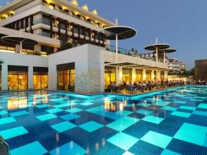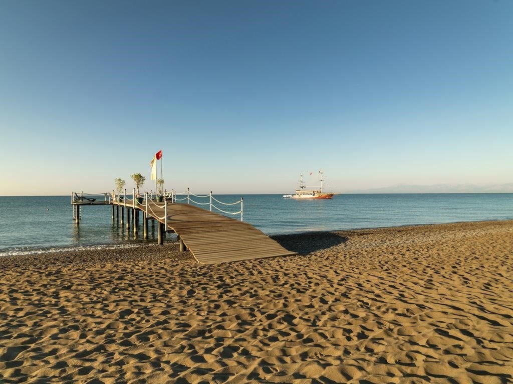 Отель находится на первой береговой линии в поселке Богазкент, в 40 км от аэропорта Анталии.