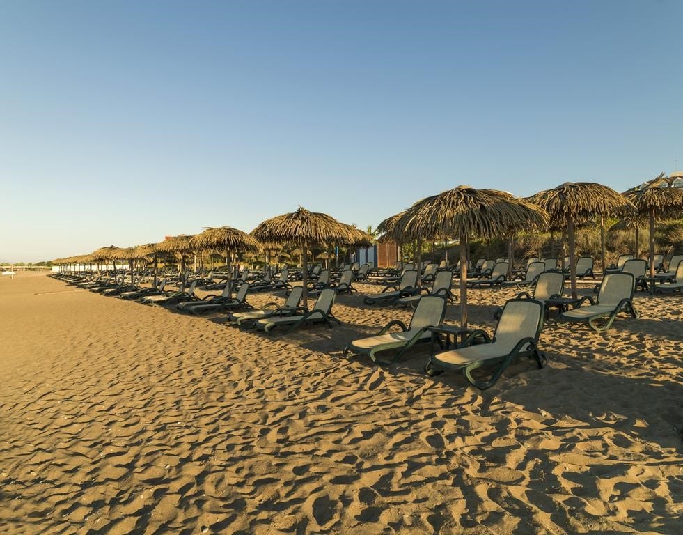 Собственный песчаный пляж находится рядом с отелем. Протяженность пляжа составляет 150 м. Шезлонги, зонтики, пляжные полотенца – бесплатно. Заход в море – песок/галька. Душ, кабины для переодевания.