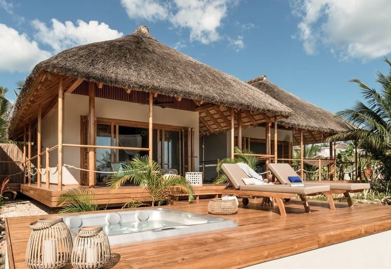 Номера. Основная задача при постройке отеля была выполнена: даже при выборе самого стандартного номера Zuri Bungalow у Вас будет максимум уединения с природой и друг с другом. Гости отеля никак не мешают друг другу. А номера с видом на океан обеспечат ежедневную возможность наблюдать знаменитые занзибарские закаты. А номера с видом на океан и open-air джакуззи – ну Вы поняли…